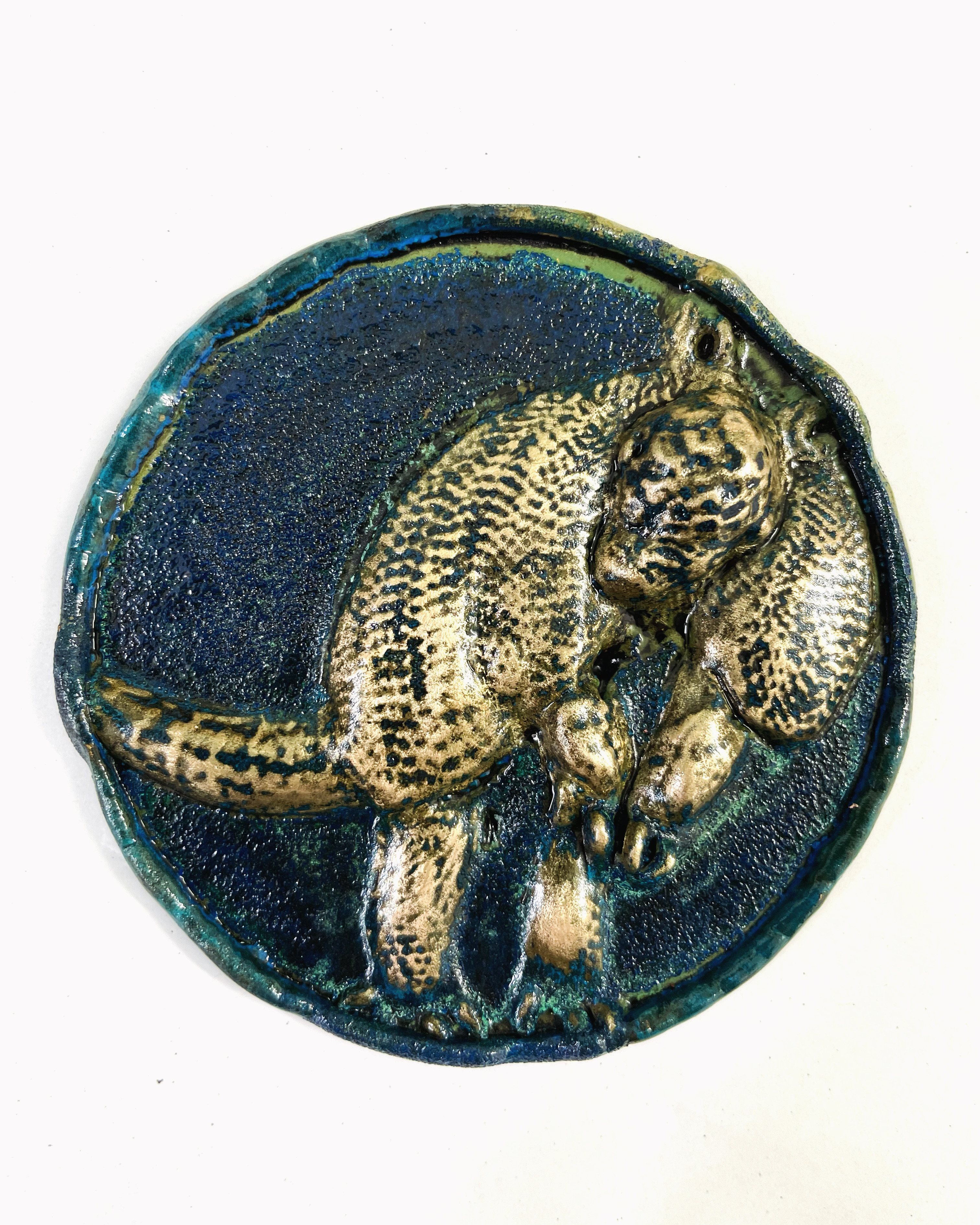 Flower faces, 2023/24, 15 x 15 cm, Porcelain and Bronze (left and middle), Blue armadillo, 2023, 8 x 8cm, Bronze